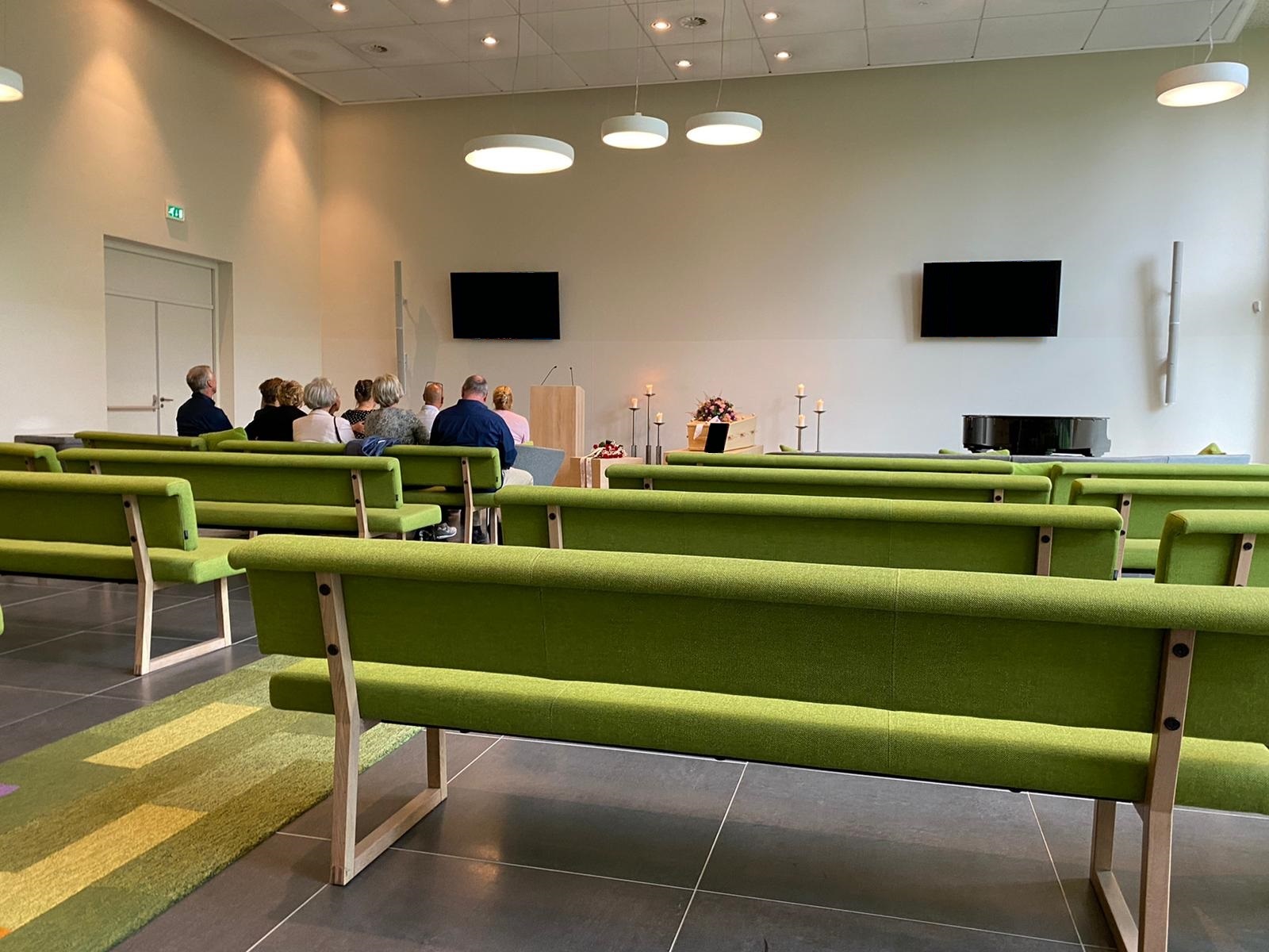 Wij verzorgen een plechtigheid (45 min.) mét condoleance (45 min.) in het crematorium. Een luxe rouwauto, bloemstuk, rouwkaarten en koffie met cake.